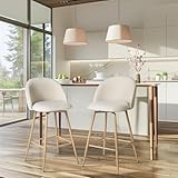 2Homy CasaHomy Casa Set of 2 Ergonomic Mid-Back Swivel Barstools - 26 Inch Seat Height Upholstery Counter Bar Stools, Cream Fabric Oak Metal