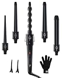 - 5-in-1 Curling Wand Set: Get the gorgeous hair you've always wanted without running to the salon every week! You can do almost anything with the 5 different sized barrels (0.35-0.7inch, 0.7-1inch, 1inch, 1-1.25inch and 1.25inch). Plus, universal 110v-240v dual voltage, 2 clips, heat-resistant glove and the 360° swivel cord make it travel-friendly, safe and convenient to use.