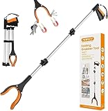 - EXTRA STRENGTH GRIPPER: Extra strenght metal bar that will hold over time; Textured rubberized ends make it easy to grab any object; It’s compact and foldable so you can easily store it anywhere when not in use and lightweight so you easily lift it and take it anywhere; Great elderly assistance reacher grabber pickup tool, Garden claw grabber and Reaching assistant tool