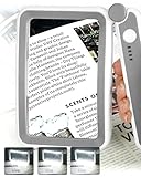Main highlights- Touch Switch & Adjustable Lighting: The full page magnifier has 12 super-bright LEDs. Easily illuminate your reading material. Simply touch the on/off switch on the magnifier handle to set the desired brightness easily. The LEDs provide bright, even light to ensure every detail is visible, reducing eye fatigue and improving the overall viewing experience. A perfect aid for seniors suffering from ageing eyes and macular degeneration.